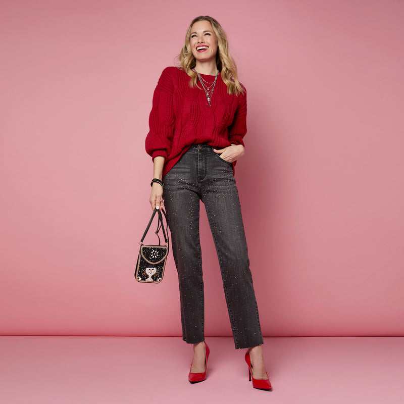Astoria Sparkle Sweatshirt with Stripe Trim