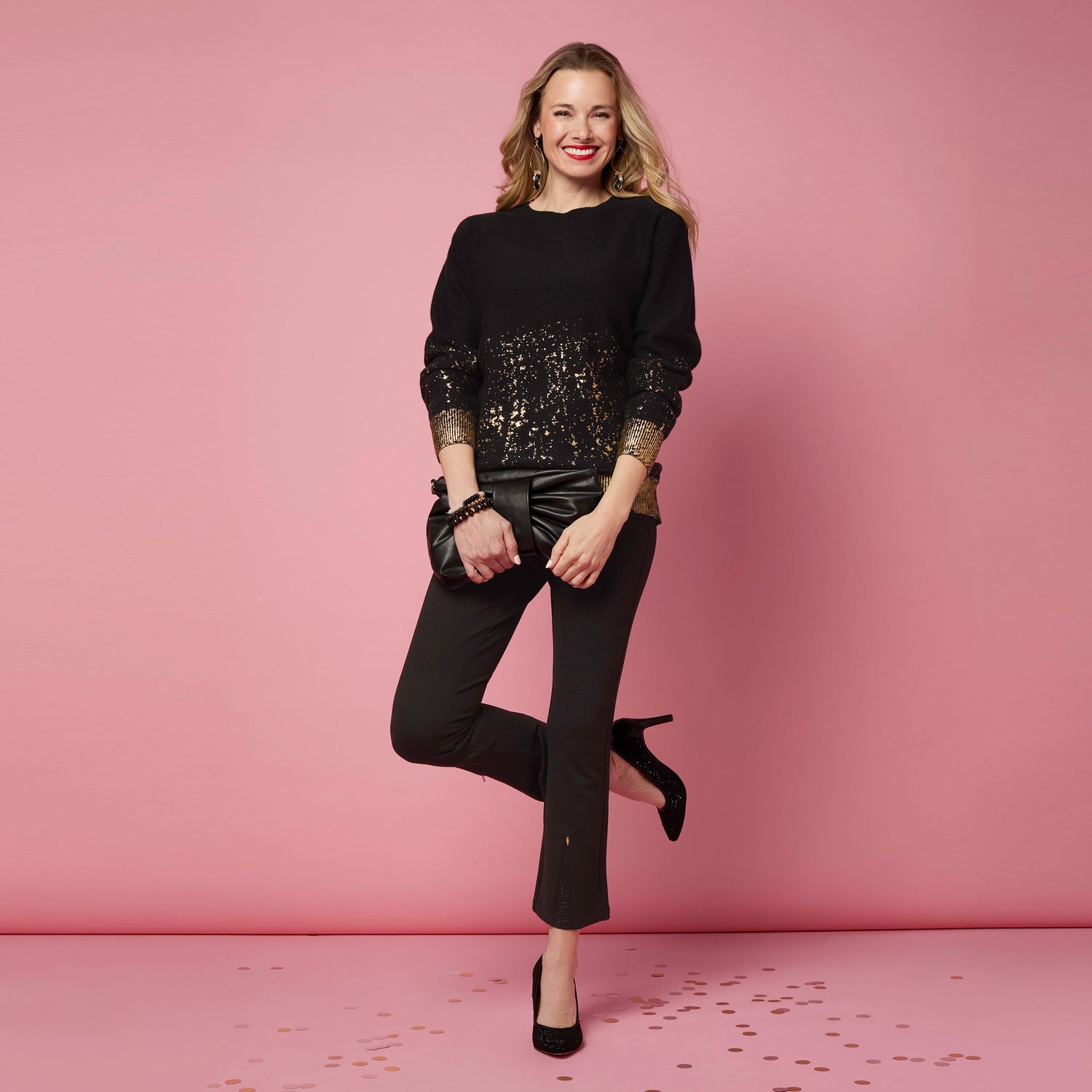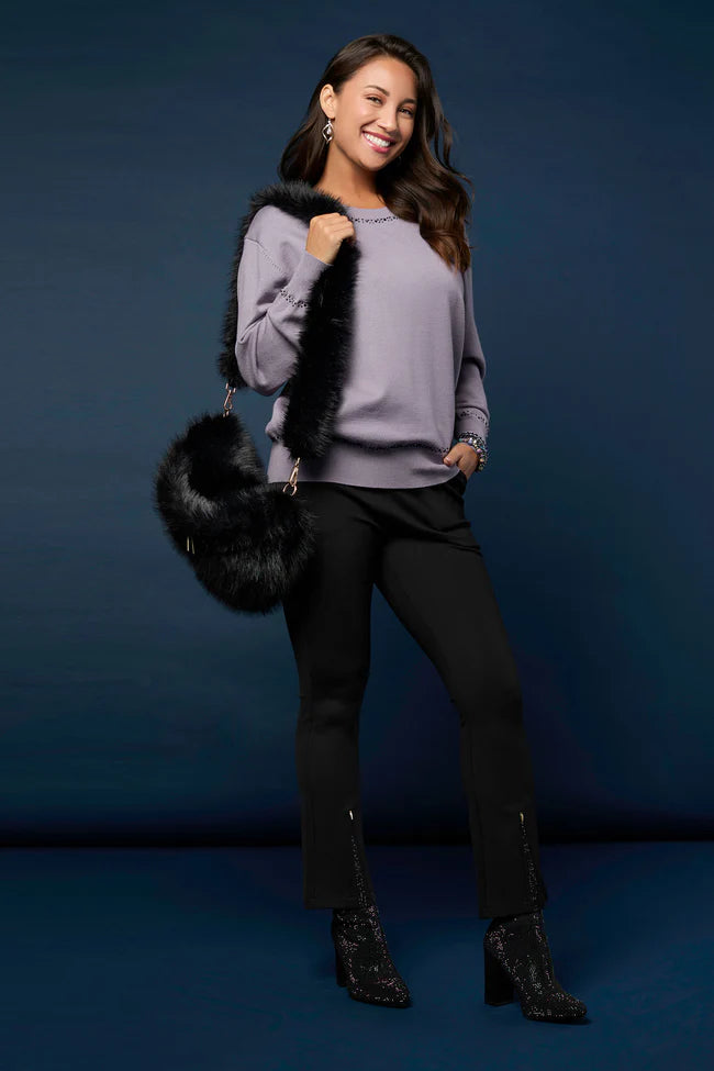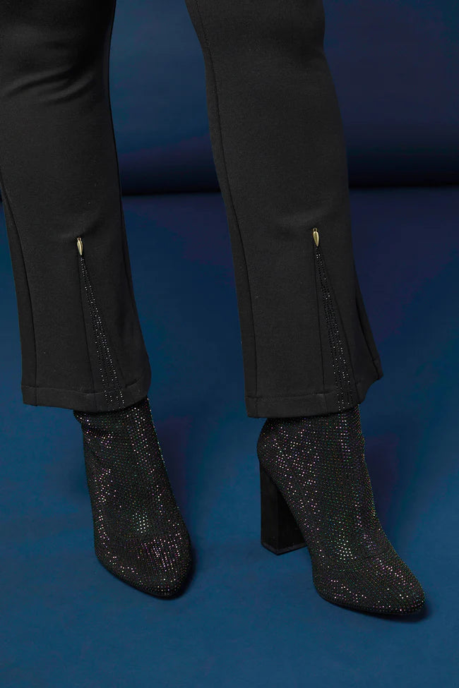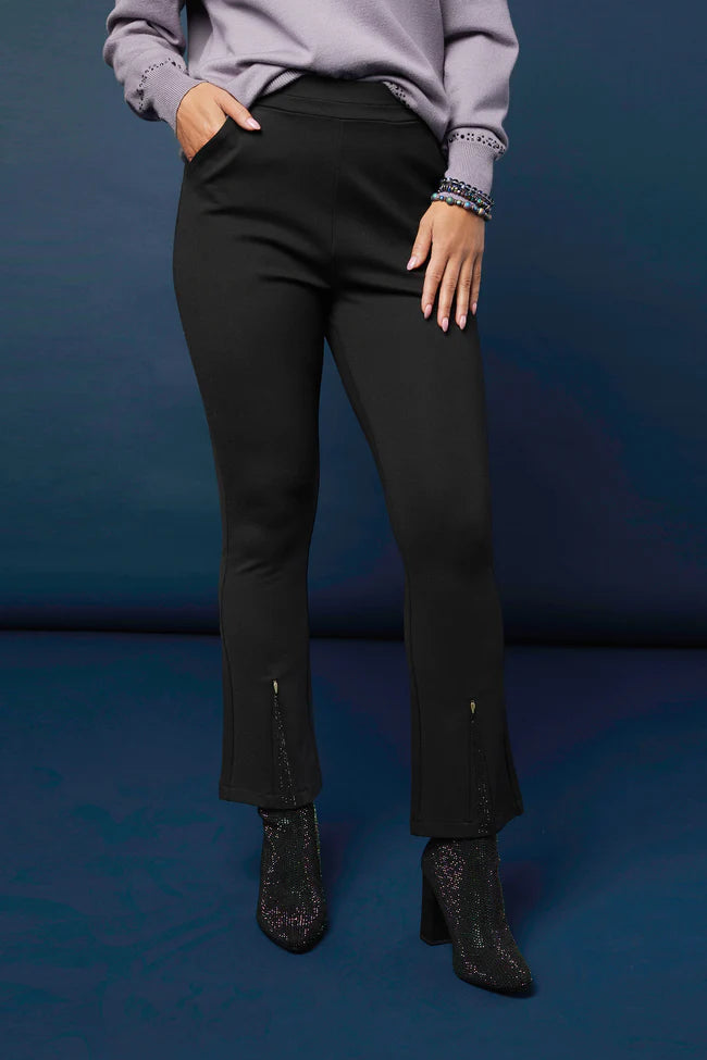The Celyse Baby Flare Pant with Front Insert elevates everyday style with a sleek, elongating silhouette. Crafted from soft, breathable stretch knit, it features a comfortable pull-on waistband, a flattering baby flare leg, and a chic front insert detail. Versatile and wrinkle-resistant, this pant moves with you from office to weekend. Dress it up with heels or keep it casual with sneakers; machine washable for effortless care.