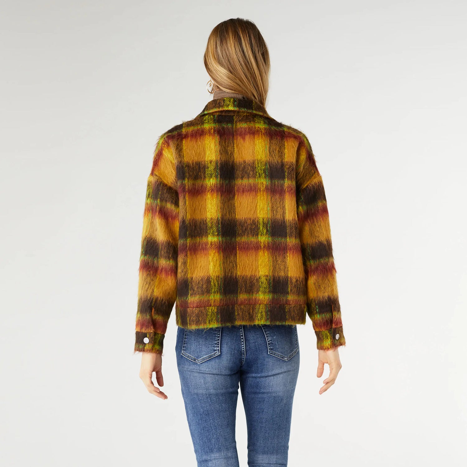 Stay on trend with the Darcey Shacket - the ultimate combination of style and comfort. This retro-inspired shacket features a unique dye pattern, front snap closures, and handy chest pockets. Elevate your outfit effortlessly with this wardrobe staple.
